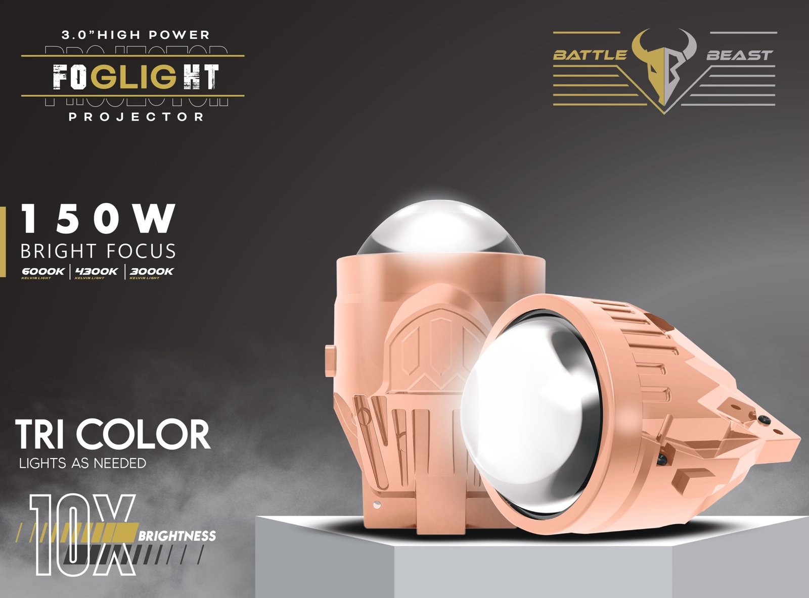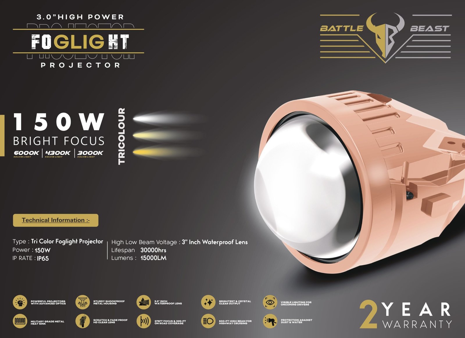Battle Beast Tri Color 3.0 Inch Fog Light Projector 150W | Best Fog Light for Indian Roads